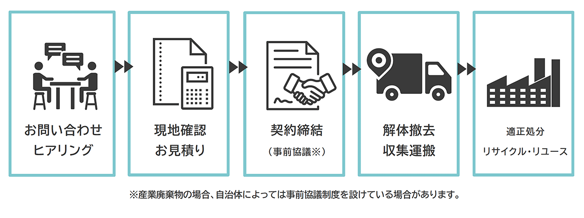 解体撤去から収集運搬、リサイクル(リユース)まで一貫したサービスを提供することで、お客様の手間やコストを削減します。